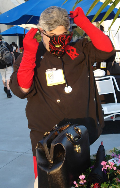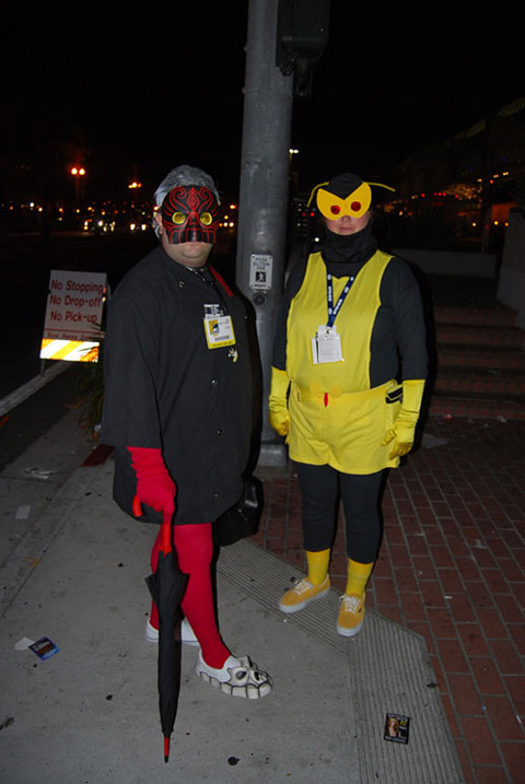 The con was pretty much over at that point, so we had to decide... Eisner Awards or super-cool Adult Swim Invite Only Party Super-Fun Time on the roof of Petco Park?? Hmm... can you guess which we chose? There's something liberating about strolling through the streets of the Gaslamp Quarter of San Diego in a ridiculous costume...