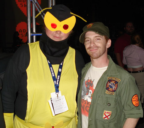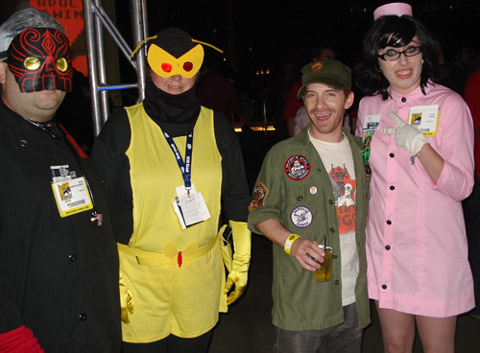 This guy comes over to join us and says we should go over to the Adult Swim after party. He gives us some passes, and neither M or I realized (at first - because he was wearing these big sunglasses) that it was Jackson Publick, one of the creators of the Venture Bros! So we all hang together for a while, enjoy a smoke, talk about the show, the con, what have you...